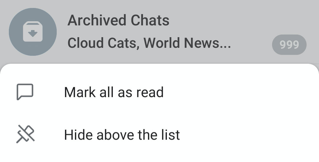 A cluttered chat list reflects a cluttered mind. Clear up those extra unread message counters in your archive by tapping and holding the archive folder and marking them all read. (Not to be confused with marking it red, that's a job for themes.)