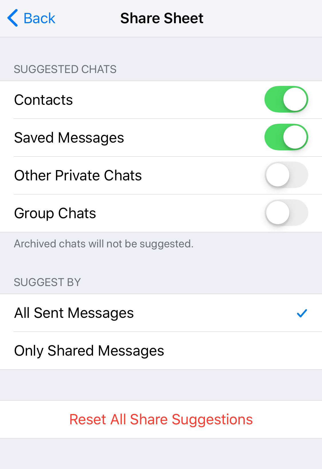 Your most popular Telegram chats were recently added to the iOS Share Sheet. In case you'd like to control what can (or can't 😉) appear there, you can use the new toggles under Settings > Data and Storage > Other > Share Sheet.