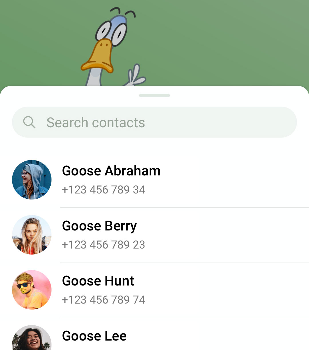 Sending contacts now uses a simple, card-style interface that won't take up your whole screen (unless you pull up to expand it).